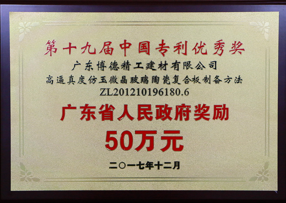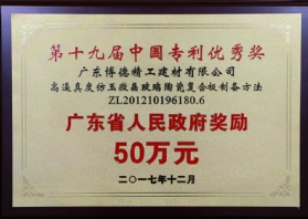 2018中国专利优秀奖政府奖励50万元