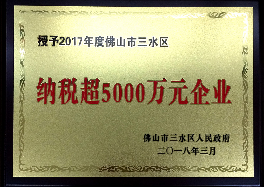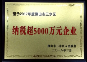 2018年 荣获2017年佛山市三水区纳税超5000万元企业