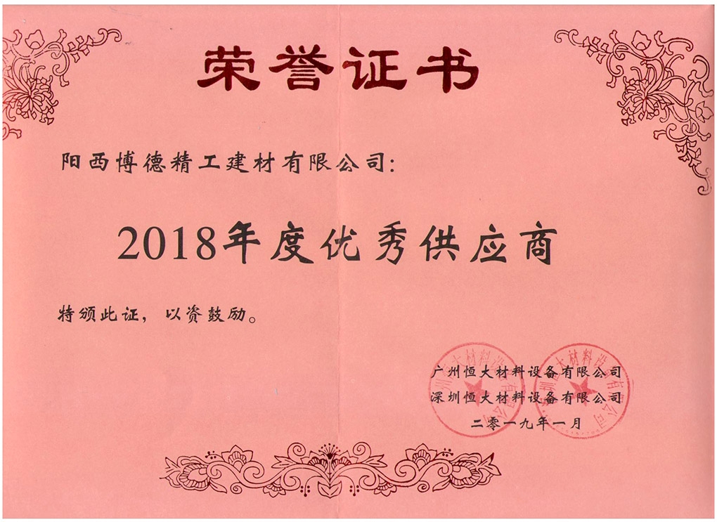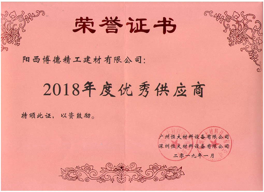 2019年 恒大优秀供应商