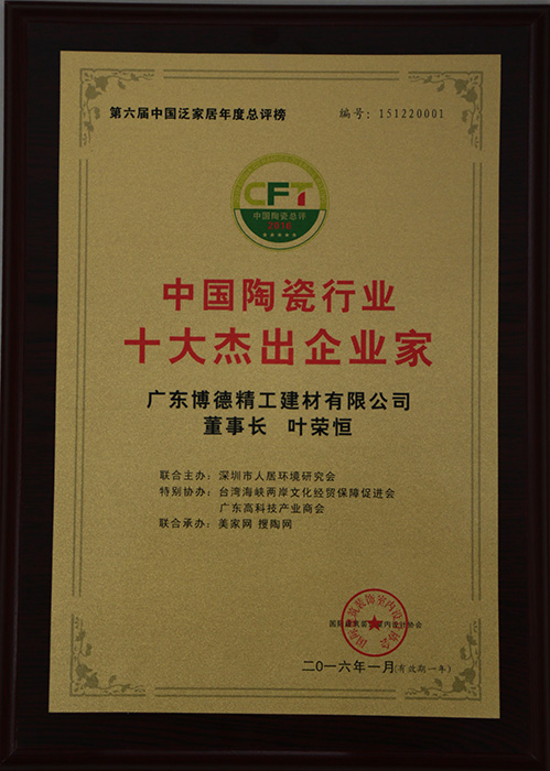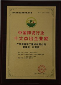 2016年 中国陶瓷十大杰出企业家(叶荣恒)