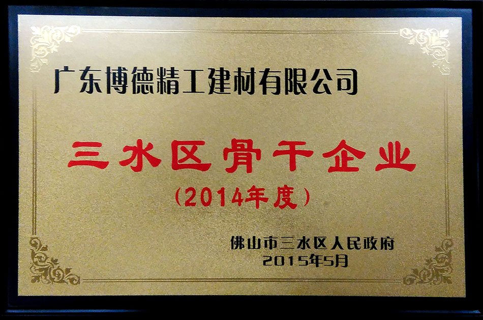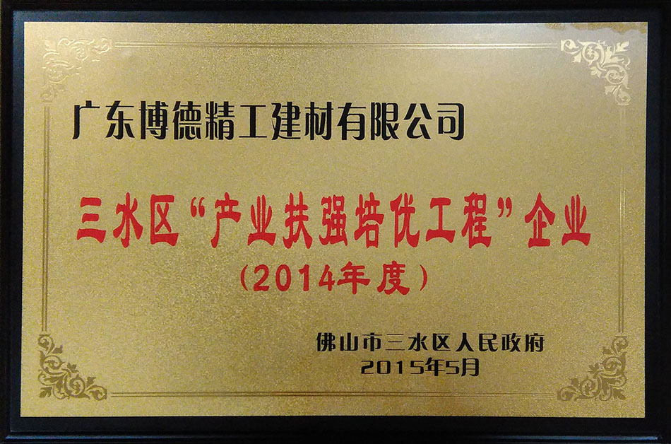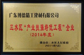 2015年 三水区“产业扶强培优工程”企业牌匾(2014年度)