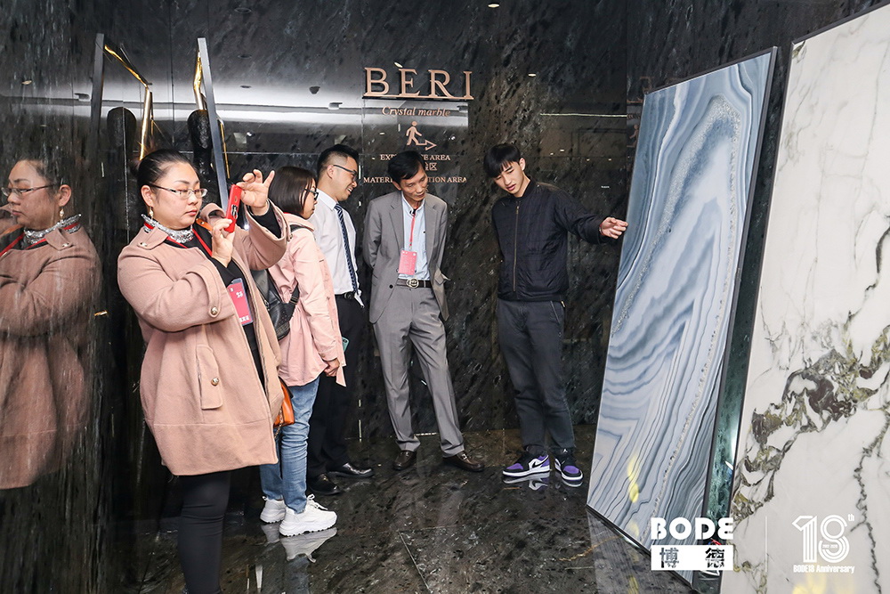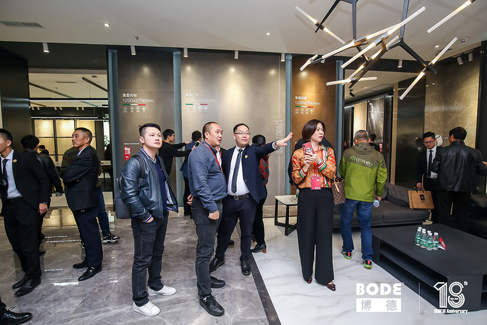 下午时分,经销商乘坐专车前往香蕉视频黄版总部展厅。参观晶刚玉▪独体煅造石材新展厅,同时体验生态岩板、生态大理石、精工原石,素色时代瓷片等百余款香蕉视频黄版新香蕉视频黄色免费。从形象香蕉视频黄色免费到普销香蕉视频黄色免费,香蕉视频黄版2019年均进行了大量与时俱进的花色更新,经销商纷纷拿出手机,咔嚓咔嚓记下自己马上要出样备货的新香蕉视频黄色免费,现场气氛十分热烈。