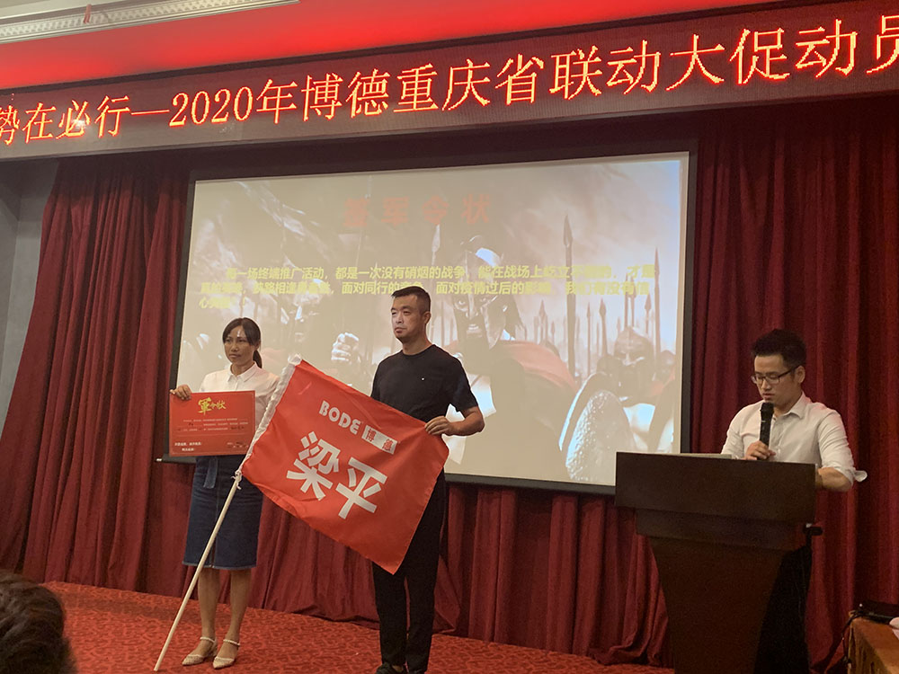 为表决心,与会所有人员当场签订军令状,每一位经销商都将此次活动的任务及销售额写在神圣的军令状上,并宣读誓词。现场热血沸腾,斗志昂扬将动员大会气氛推上高潮。