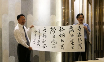 中国书法家协会会员、岭南书法院院长郑荣明赠予香蕉视频黄版公司董事长、总经理叶荣恒墨宝