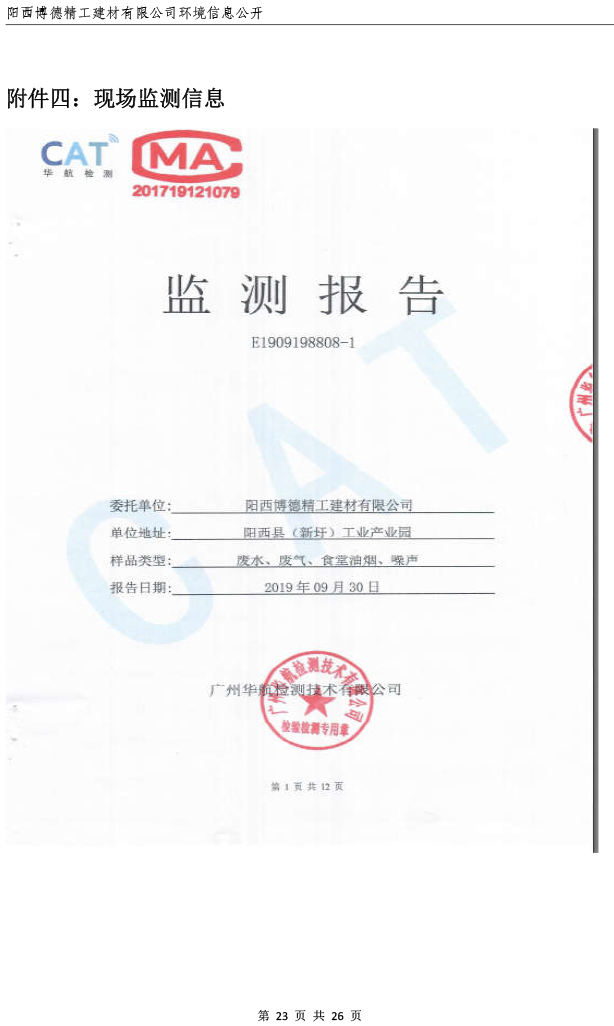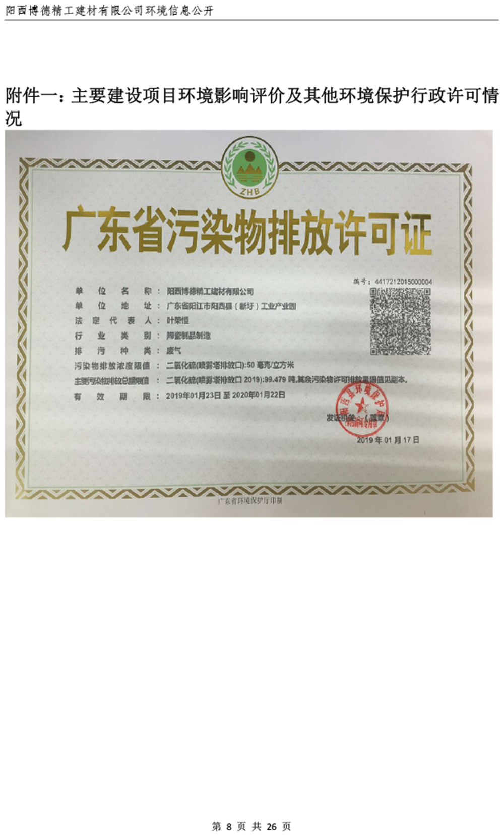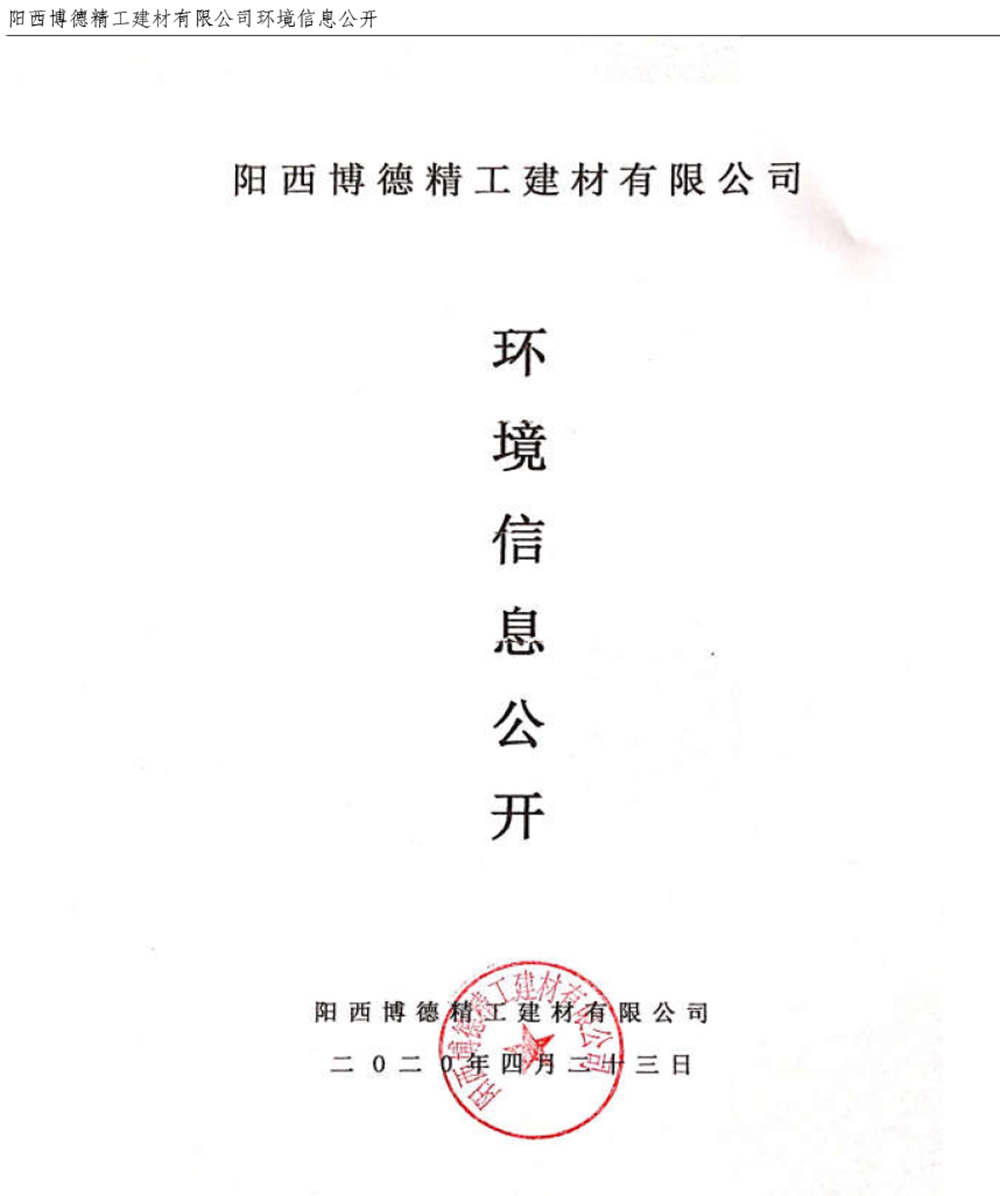 2019年阳西香蕉视频黄版建材有限公司环境信息公开