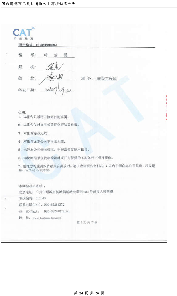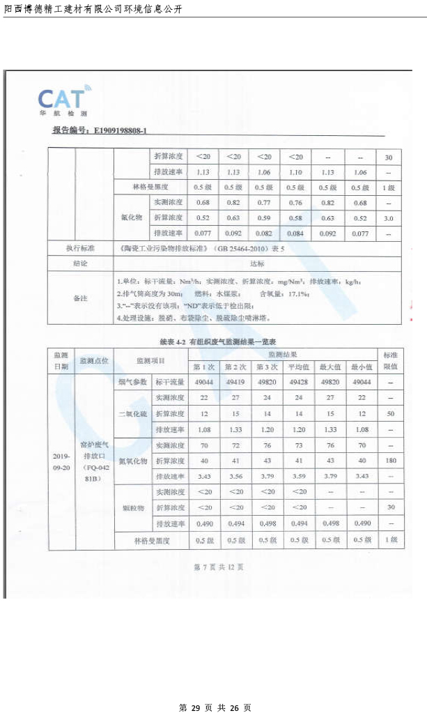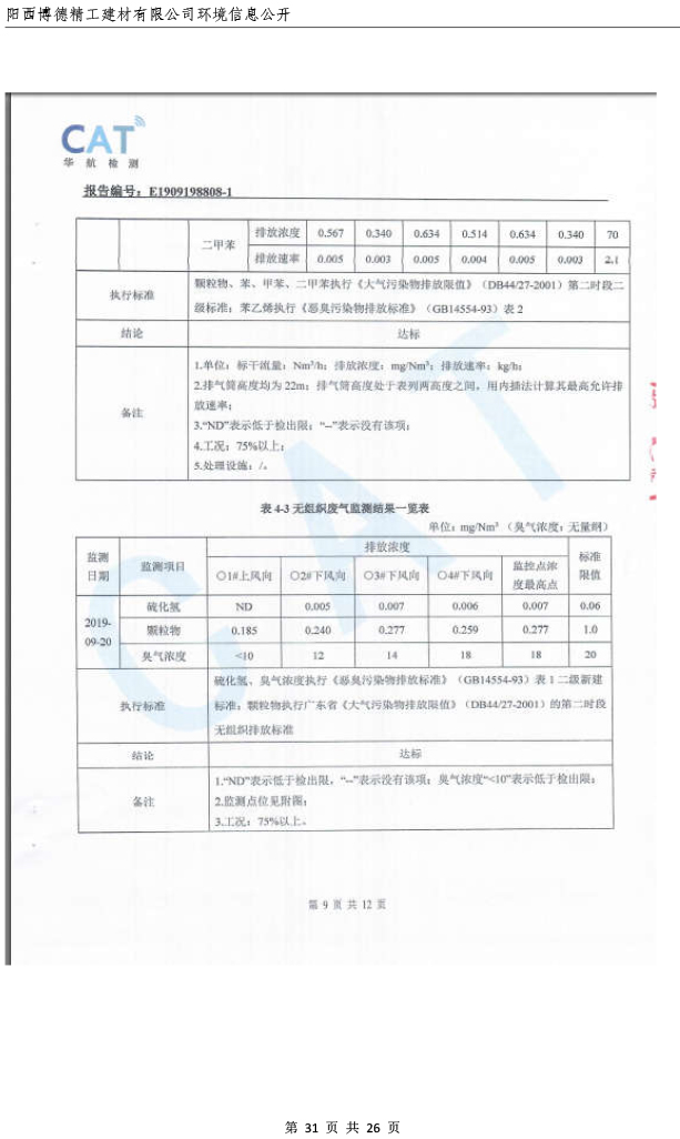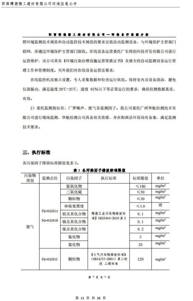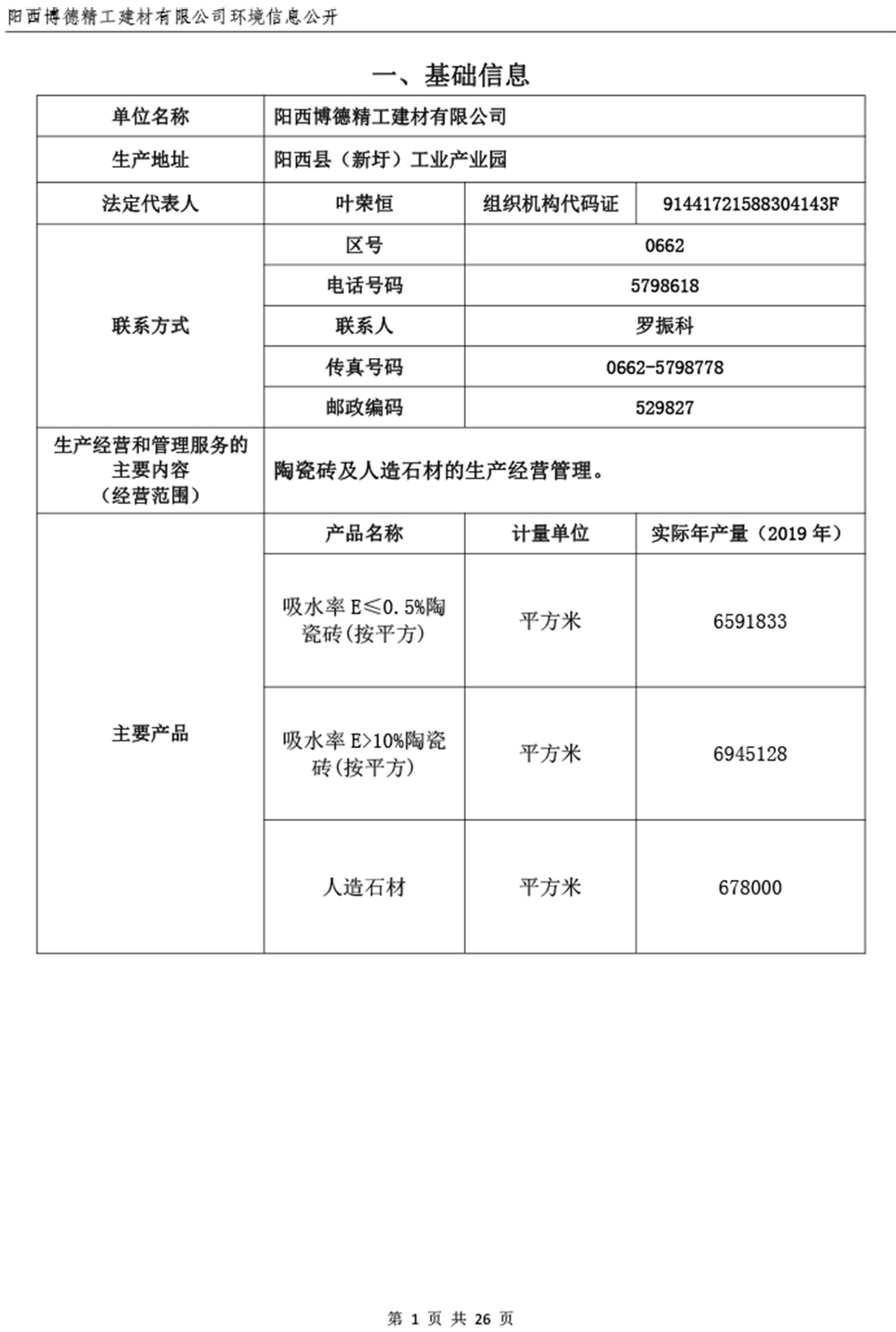 2019年阳西香蕉视频黄版建材有限公司环境信息公开